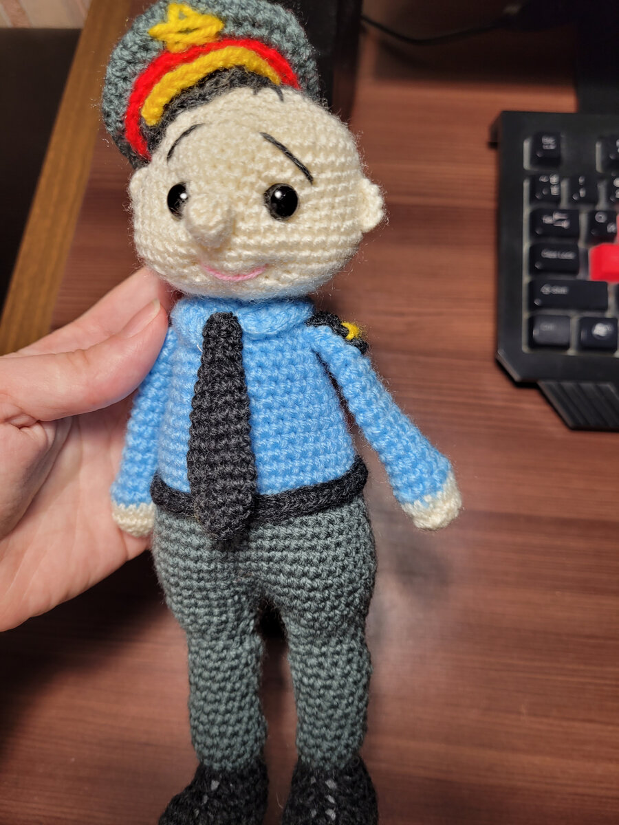 Моя постоянная заказчика в очередной раз попросила связать военных! На просторах интернета начала искать отличительные черты в порадной форме связиста и пограничника. Сотрудника МВД было вязать проще.. У них стериотипная форма, по которой их узнает каждый😏 Скажу честно, опыта в вязании человека у меня очень мало! По этому многие детали пришлось переделывать, а некоторые не получались вовсе... 😔 Но есть и плюсы➕ Я попробовала и, на мой взгляд, у меня получилась утяжка лица! Мимика получилась более естественной. Согласитесь, лучше так, чем просто шар вместо головы😁 Ну, вот что получилось! В следующем году попробую и пальчики провязывать! Хорошо, что опыт в этом уже есть, блягодоря сиреноголовому "чуду" Всё, что делается, к лучшему! ☺️ #вязаныеигрушки #мвдроссии #связист #ручнаяработа #вязаныеигрушки #вязаниеназаказ #амигурумикрючком
