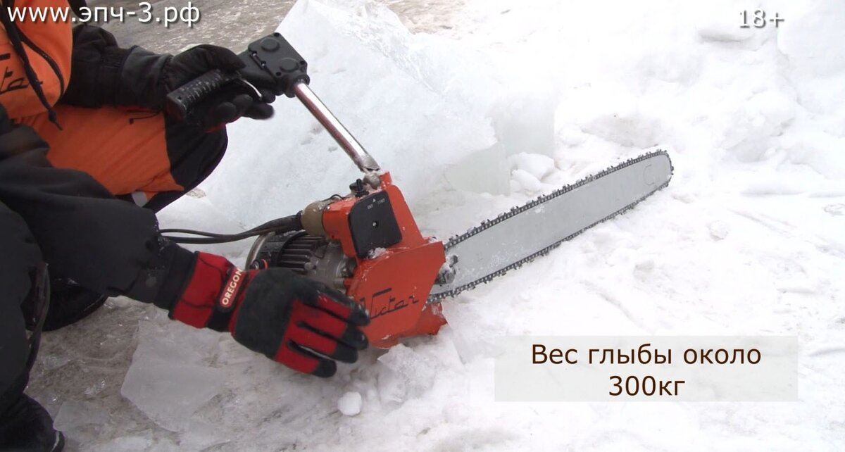 Цепная электропила ЭПЧ-3 легко пилит лед помогает в работе тем, кто строит ледяные городки работникам сферы ЖКХ и даже представителям редкой профессии - "выморозчикам"