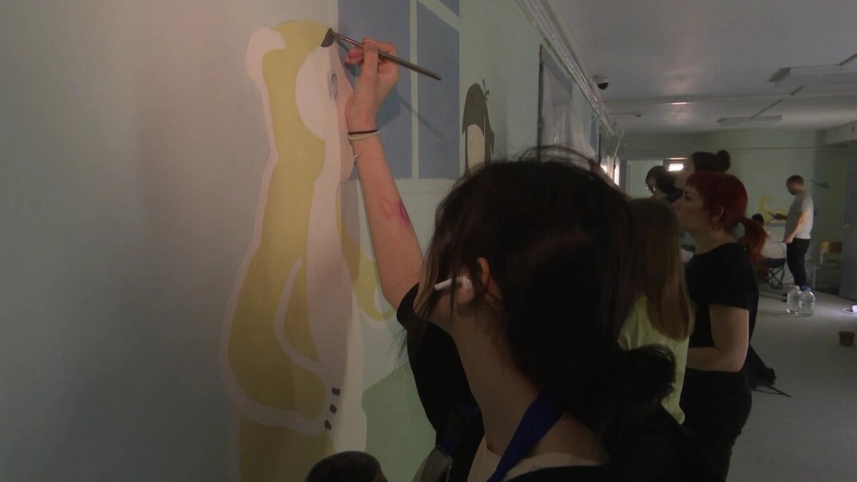 Ребятам пришлась по душе идея взрослых. Учащиеся и педагоги уренгойской художественной школы подарили сказку детской поликлинике. Они расписали стены учреждения красочными картинами. Эту идею художники озвучили в прямом эфире главе Пуровского района. Антон Колодин ее поддержал, воплощение не заставило себя ждать. Герои культовой советской трилогии постепенно оживают на стенах детской поликлиники. Художники выбрали для учреждения советский мультфильм 1969 года «Умка». Во-первых это детская тематика, плюс это северная тематика — 2 в 1 получается. Это доброе, светлое что-то. Алексей Пономаревпедагог Уренгойской художественной школы Если кто-то и забыл сюжет мультфильма, то уж колыбельную про «ложкой снег мешая…» точно слышали все. Эта история наполнена светлыми оттенками чувств — при работе тоже выбрали нежные тона. Рисуют строительными красками — необычный для художника материал, но так нужно для того, чтобы итоговое произведение не отслоилось от фона. Росписью по стене я работаю в первы