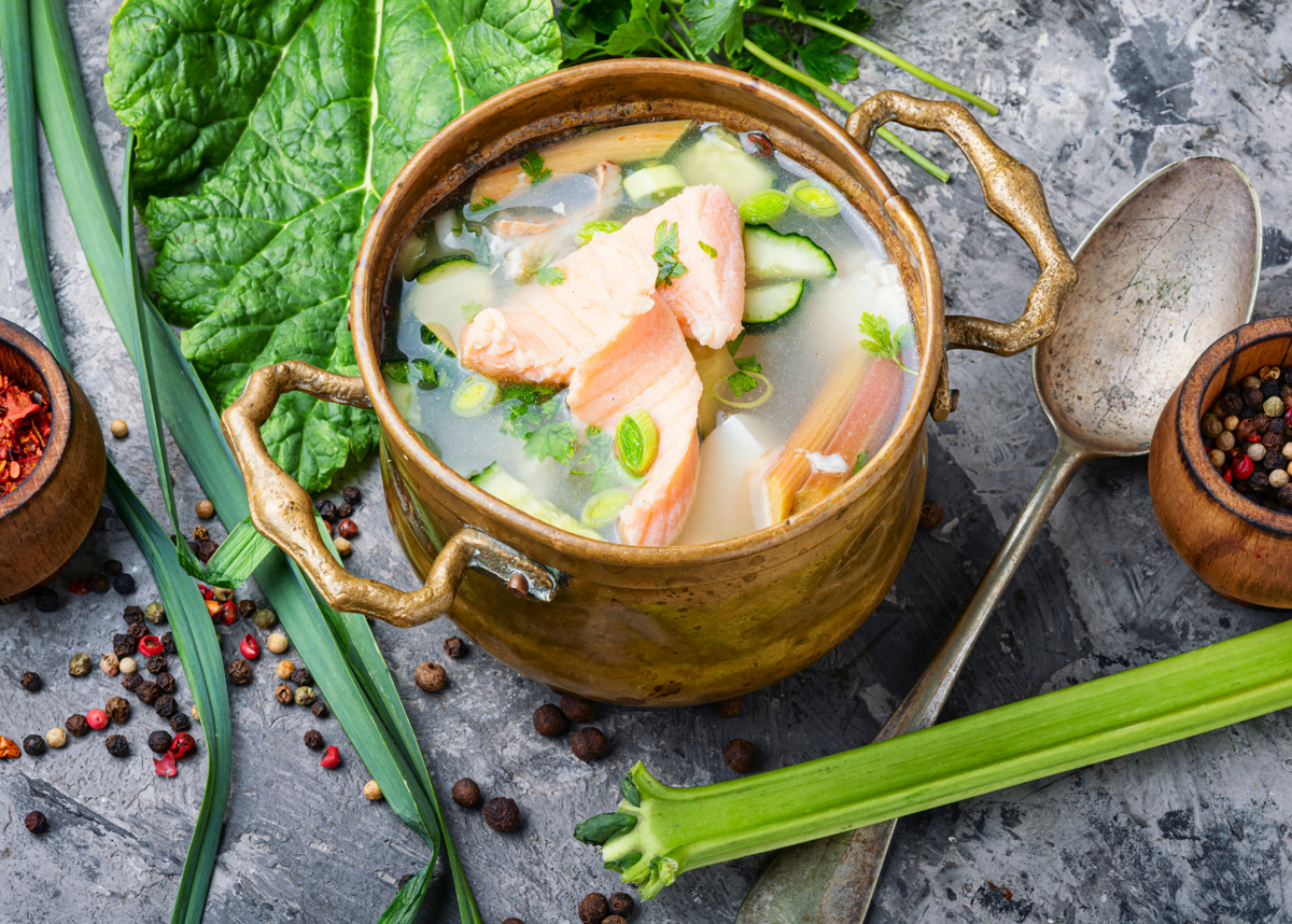 Лето длинное, а значит еще один рецепт вкусного холодного супа не помешает добавить в наш кулинарный блокнот. Холодный суп с ревенем, рыбой и овощами вкусный, легкий и освежающий. Готовится довольно просто из доступных ингредиентов.