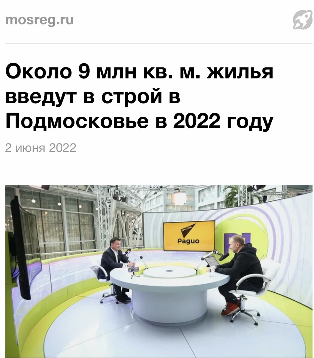 В Московской области планируют сдать порядка 9-9,5 млн кв. м. жилья в текущем году, заявил Губернатор М.О.