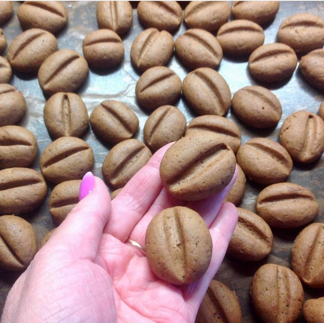 #печенье #шоколадноепеченье Ингредиенты: муки, сливочное масло, сливки 33%, сахара, сублимированного кофе, какао, молока Способ приготовления: Кофе растворить в горячем молоке. После, добавить масло, сахар, сливки, какао. Всё взбить. Затем добавить муку и вымешать тесто. Из теста, отрывая маленькие кусочки делаем шарики (размер с черешню). Слегка их вытягивая, придавая форму зёрен. Затем, палочкой или зубочисткой делаем (продольно) надавливание, глубокое но не до конца. Выкладываем зёрна на лист. Печём в разогретой до 180 градусов духовке 12-15 мин.