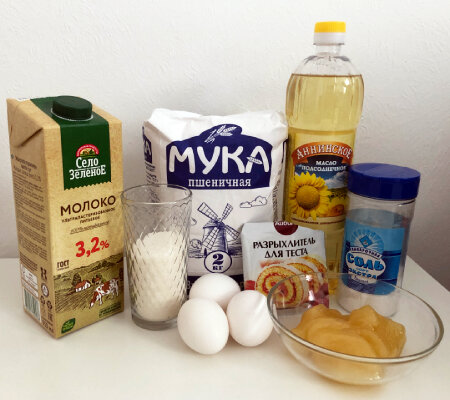 - подсолнечное масло 300-400 мл Приготовление: 1. Замесим тесто. Просеиваем муку и разрыхлитель. Добавляем сахар, яйца и молоко. Вымешиваем тесто, пока оно не станет однородным. Сначала будет трудно, но вскоре тесто станет похоже на пельменное. Накрываем тесто пищевой пленкой и оставляем на полчаса. 2. Время прошло - выкладываем тесто на стол и раскатываем в пласт толщиной примерно 0,3 см. Нарезаем тесто на длинные узкие по