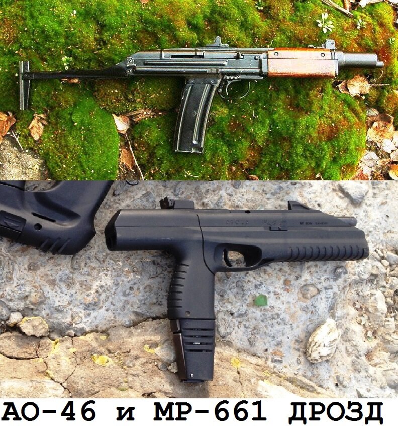 Приветствую на канале Хардбольского! У нас в команде в ходу пневматические автоматы "ДРОЗД" МР-661, и я обратил внимание на их небольшое внешнее сходство с советским опытным малогабаритным автоматом АО-46. Итак, разработка началась в 1969 году инженером ЦНИИточмаш (г.Климовск) П. А. Ткачевым. Он решил создать хорошее и легкое оружие для танкистов и летчиков под автоматный патрон 5,45х39 мм и массой в 2 кг. Разработка велась в очень модной нынче схеме "булл-пап" - это когда магазин вставляется в пистолетную рукоятку. Такая схема позволяет сильно уменьшить габариты всего изделия, но при этом сложна в производстве. Автомат имел много интересных технических решений. Так, в частности, он имел интересный пламегаситель, призванный также немного уменьшить еще и шумность, ввиду того, что патрон уж очень мощный для компактного оружия и мог причинить вред слуху оператора. Также были применены магазины на 15 патронов, чтобы обеспечить подачу патронов, т.к. более емкие магазины от АК не справляли