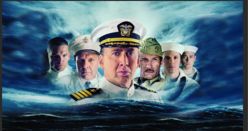 Николас Кейдж выжил… По фильму, его сбросило с тонущего крейсера взрывной волной…