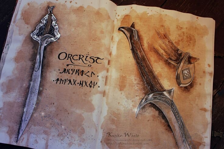 "Этот меч — знаменитое оружие, Торин, на языке рун он именуется Оркрист, что в переводе на гондолинский означает Сокрушитель Гоблинов."* Еще одним сокровищем, найденным в пещере троллей отрядом Торина Дубощита был Оркрист - меч работы древних великих эльфов, выкованный за тысячелетия до описываемых событий для войны с гоблинами/орками. Об этом предназначении свидетельствовало и имя клинка, рунами вырезанное на рукояти. О прежнем владельце достоверной информации нет (хотя предположения имеются), но попав к Торину, оружие обрело хозяина достойного: "— Я буду беречь его как зеницу ока, — сказал он. — Да сокрушит он гоблинов, как встарь!"* И он сокрушал))): "Верховный Гоблин бросил взгляд на меч и испустил леденящий душу вой ярости и злобы, и все воины заскрежетали зубами, загрохотали щитами и затопали ногами. Они сразу признали меч. В свое время, когда светлые эльфы Гондолина теснили гоблинов и сражались с ними под стенами своего города, этот меч убил сотни гоблинов. Эльфы называли его
