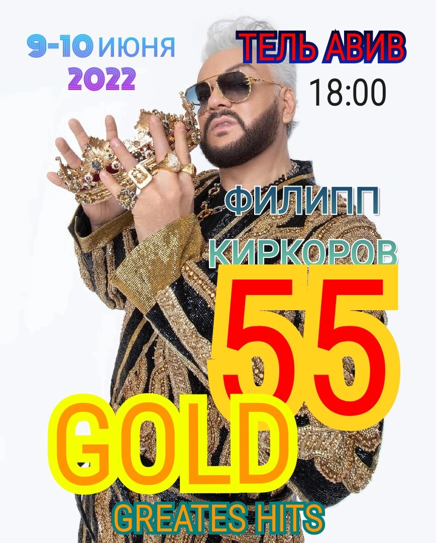 9-10 июня 2022 Тель Авив Начало в 18:00 Филипп Киркоров шоу "55 GOLD GREATES HITS -лучшие хиты