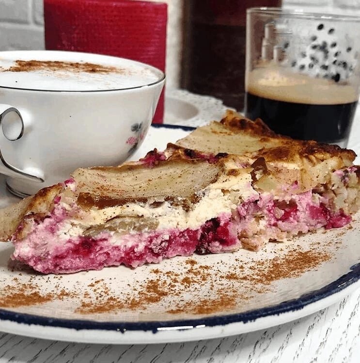Проснулась ты утром и думаешь: «Опять овсянка, творог, яйца…»😔😔😔 Скажи нет однообразным и скучным завтракам!! Разнообразь свои ПП-будни вкусняшкой, возьми и сделай овсяный пирог с творогом и ягодами!🤩🤩🤩 Так-с,что нам нужно: 🔹180 грамм сухой овсянки длительной варки 🔹380 мл кефира 🔹2 яйца 🔹250 грамм творога (5%) 🔹клюква ~250гр 🔹груша ~250 гр ✔️Рецепт: 🔹Овсянку смешивай с кефиром, одним яйцом. 🔹Выкладывай в форму и ставь в разогретую духовку, чтобы слегка схватилась. 🔹В это время взбивай яйцо с сахзамом, подмешивай туда же творог и клюкву. 🔹Сверху выкладывай на чуть схватившегося теста. 🔹Украшаем грушей и посыпаем корицей. В духовку на 150 градусов минут на 15-20. Достать и дать остыть Кбжу 115/7,4/3,3/14,2