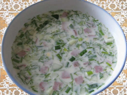 Всем привет! Окрошка – это старинный русский холодный суп готовят весной и летом, когда жарко и особо не хочется кушать сытные блюда. Процесс приготовления легкий и совсем не хлопотный. Окрошка с добавлением копченой колбасы получается по вкусу ароматная и интересная. Изюминку этому блюду придаст заправка из несладкого кваса. Готовится для семейного весеннего и летнего обеда. Ингредиенты: · Копченая колбаса – 400 гр. · Огурец – 3 шт. (средне плодный) · Картофель – 4 шт. (не очень крупных) · Яйцо – 6 шт. · Укроп – 1 пучок · Лук зеленый – 1 пучок · Соль – по вкусу · Майонез – по вкусу · Квас – 1,5 л. (несладкий) Приготовление: Приятного аппетита!