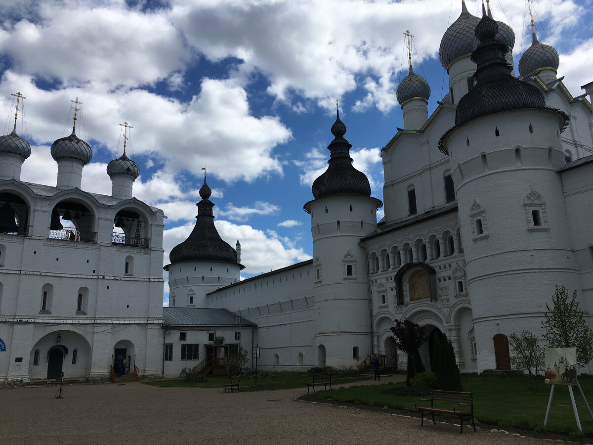 Архитектурный ансамбль Ростовского кремля состоит из Соборной площади, Архиерейского двора и Митрополичьего сада. Съёмки исторической части фильма "Иван Васильевич меняет профессию" проходили на всех трёх Ростовских кремлёвских "площадках".