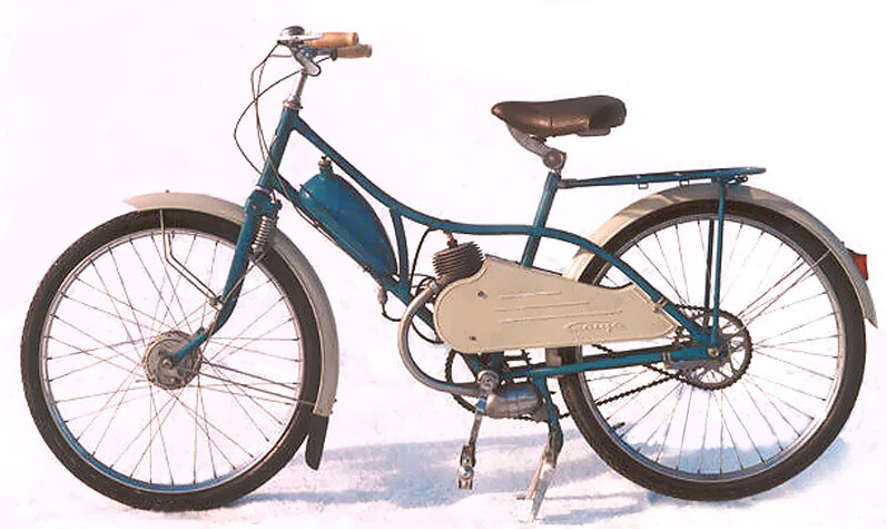 Здравствуйте сегодня я расскажу о мечте многих советских детей и взрослых о мотовелосипеде Рига-2 «Гауя» Мотовелосипеда «Гауя» имел фигурную жёсткую раму спаянную из труб разного диаметра, на ней устанавливалась каретка педалей велосипедного типа. Передняя вилка маятникового типа с пружинными амортизаторами, подвеска заднего колеса была жесткая. Его выпуском в свое время занимался Рижский завод имени «Саркана Звайгзне». Название техника получила благодаря одной из крупнейших рек в Латвии. На конвейер Рига-2 «Гауя» встал в 1961 году в качестве замены Риги-18. На переднем колесе была установлена втулка с тормозными колодками. На заднем колесе монтировалась велосипедная втулка типа <<торпедо>> , тормоз приводится в действие педалями. Колеса велосипедные 26", с покрышками размером 26х2" (665х48 мм). Поворотная ручка управления дроссельной заслонкой карбюратора и рычаг переднего тормоза располагались на правой половине руля, а на левой стороне рычаг сцепления. Седло пружинное, из микропори