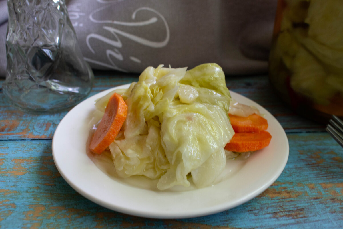 Храним закуску в холодильнике. Через пару дней капусту можно подавать к столу. Сочно и вкусно!