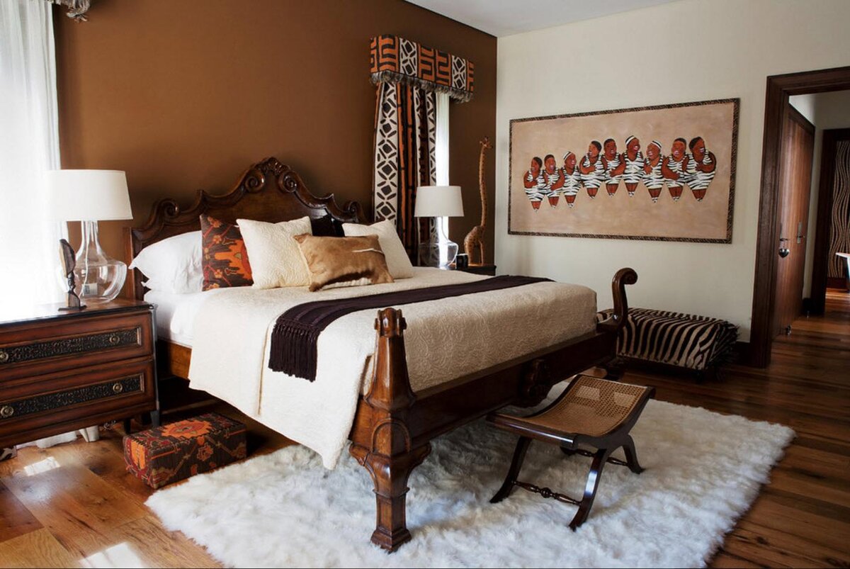 Африканский стиль не похож на другие. Таинственный, мистический и манящий, он вызывает восторг, страстный интерес и даже удивление. Яркость, теплая, а иногда и жаркая цветовая гамма, плавный переход оттенков, оригинальные предметы декора дарят интерьеру уют и душевность, а использование дерева, шкур животных, ритуальных статуэток и идолов в украшении, придают этому стилю загадочность, индивидуальность и архаичность. В интерьере преобладают естественные цвета. В основном дизайнеры используют разные оттенки желтого, коричневого, красного, но особое предпочтение отдают кофейному, песочному, терракотовому цвету и охре. Мягкость интерьера разбавляет довольно грубая и угловатая мебель из кожи и черного дерева. Кстати черный цвет используют в основном только для создания акцента. Для декора и подчеркивания африканского стиля используют натуральные ткани из хлопка, льна и шерсти, иногда с ярким, незамысловатым орнаментом. Так же украшением служит посуда из природных материалов, например, глины