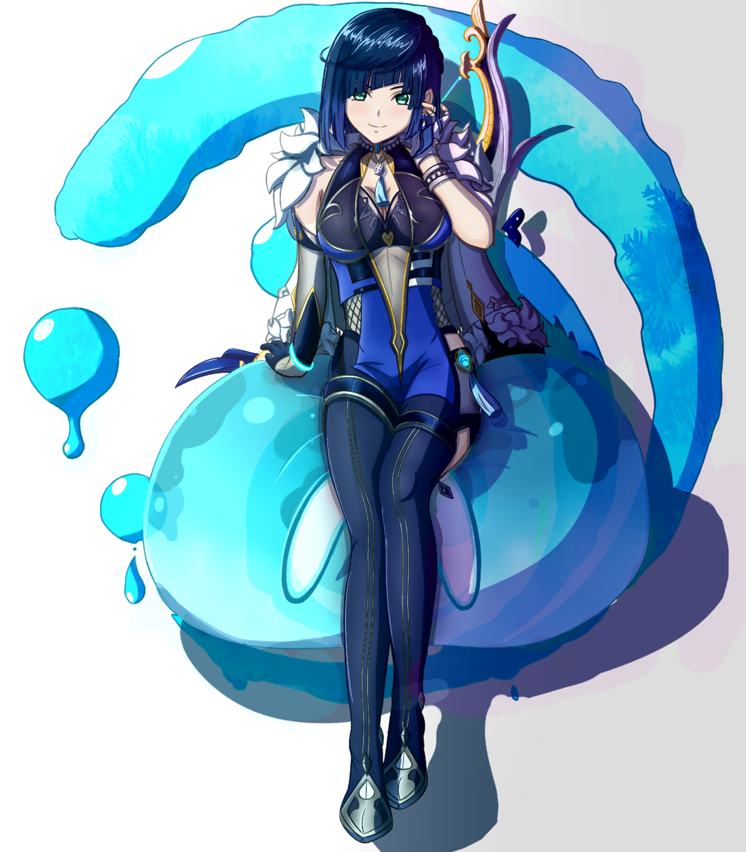 #девушки #исскусвто #стиль #Е лань #геншин импакт #слайм #аква #genshin impact #арт #игры
