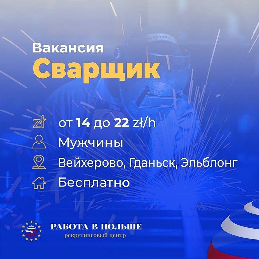 ❗Мужчины от 18 до 50 лет❗️ Что нужно будет делать? ЖИЛЬЕ 🏡 Проживание — БЕСПЛАТНО, 150 злотых вычитается из зп за коммунальные услуги 🏡 В комнатах по 2-3 чел, кухня, душ, горячая вода, мебель, одеяла, подушки, стиральная машина и пр. ТРЕБОВАНИЯ: УСЛОВИЯ: ❗️❗️ПРОВОДИМ ДИСТАНЦИОННЫЕ КОНСУЛЬТАЦИИ И СОБЕСЕДОВАНИЯ❗️❗️РАБОТАЕМ СО ВСЕМИ РЕГИОНАМИ❗️❗️ НАШ САЙТ — https://rabotavpolshe.com Мы будем рады рассказать вам о вакансиях и подобрать подходящую. Просто напишите нам: ❗️ +79118567076 (WhatsApp/Viber/Telegram) 📲kaliningrad@rabotavpolshe.com г.Калининград, пр-кт Победы, 27 #работавпольше #работавжизни #жизньвпольше #работадлясемейныхпар #работапольшалегально #работапольша #сварщик #сварщики #сварщикработа #работасварщиком