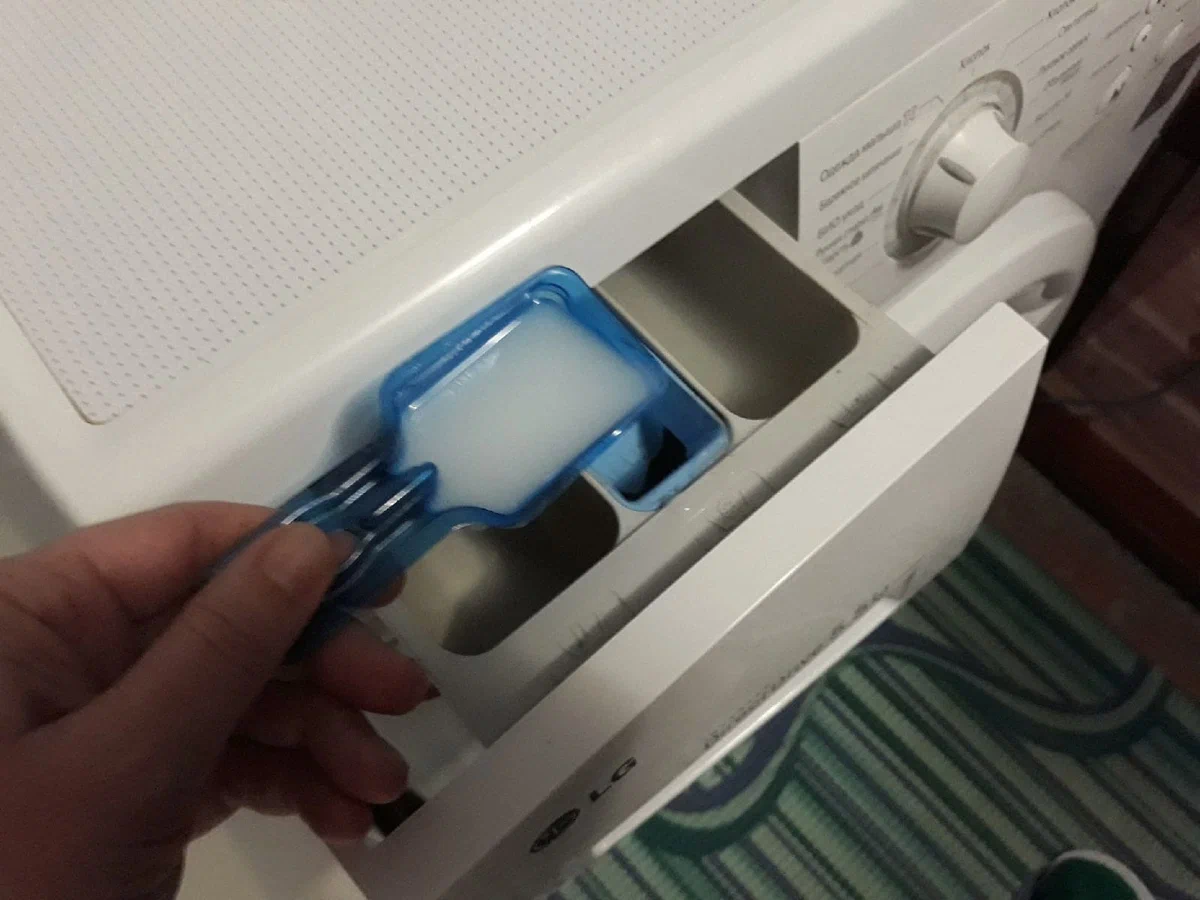 Добавьте 150 г буры в ополаскиватель. Предварительно размешайте в 200 мл воды и выберите режим полоскания для вашей одежды.