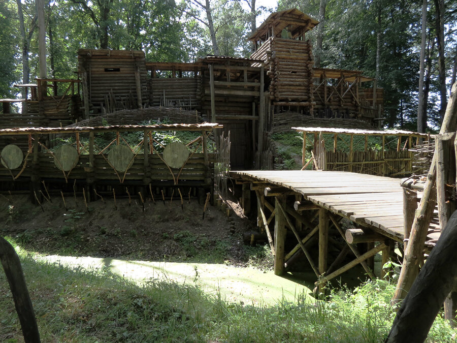 Ров также был неглубоким, его основная задача - задержать таран, вернее погасить ту энергию, которую придаёт разбег. Обрати внимание на эти точарщие из земли колья - как думаешь, для чего они? На самом деле очень просто - замки штурмовали совсем не так, как показывают в фильмах.