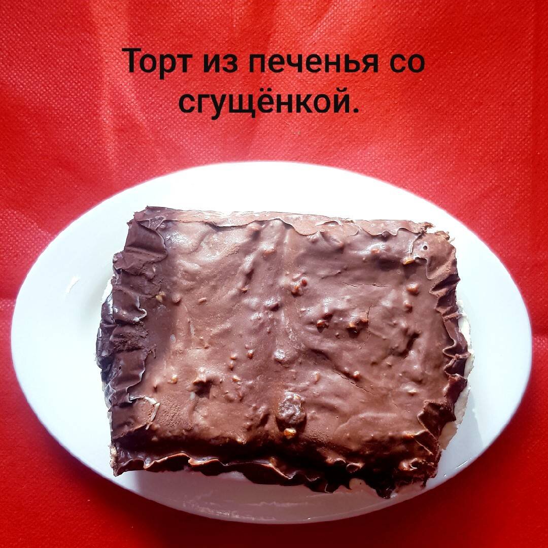 За последнее время слишком часто делала тортики и пирожки и набрала лишние 3 кг. Решила больше не готовить тортики. Но не выдержала... 🤗 И вчера снова приготовила тортик. Когда я уставшая прихожу с работы, то быстро снять чувство усталости мне помогает чашечка кофе и какое - какого-либо лакомств к нему. В этом случае выручает такой тортик. Это рядовой повседневный тортик, который готовится быстро, без выпечки. Использую обычно то печенье, которое оказалось в данный момент дома под рукой (за специальным каким-то печеньем в магазин не хожу). В любом случае торт получится вкусным. 👍👍👍 А я сладкоежка! 🍰🎂🧁Попробуйте приготовить... Я думаю, что вам, а особенно детям, понравится такой быстрый вариант торта. Готовьте с удовольствием! Ингредиенты: Печенья (8 шт.), Молока (для печенья), Масла сливочного (на крем), Сгущёнки (на крем), Чёрного горького шоколада, Сливочного масла (на глазурь), Молока (на глазурь) Способ приготовления: Для приготовления этого торта я использовала печенье "Дым