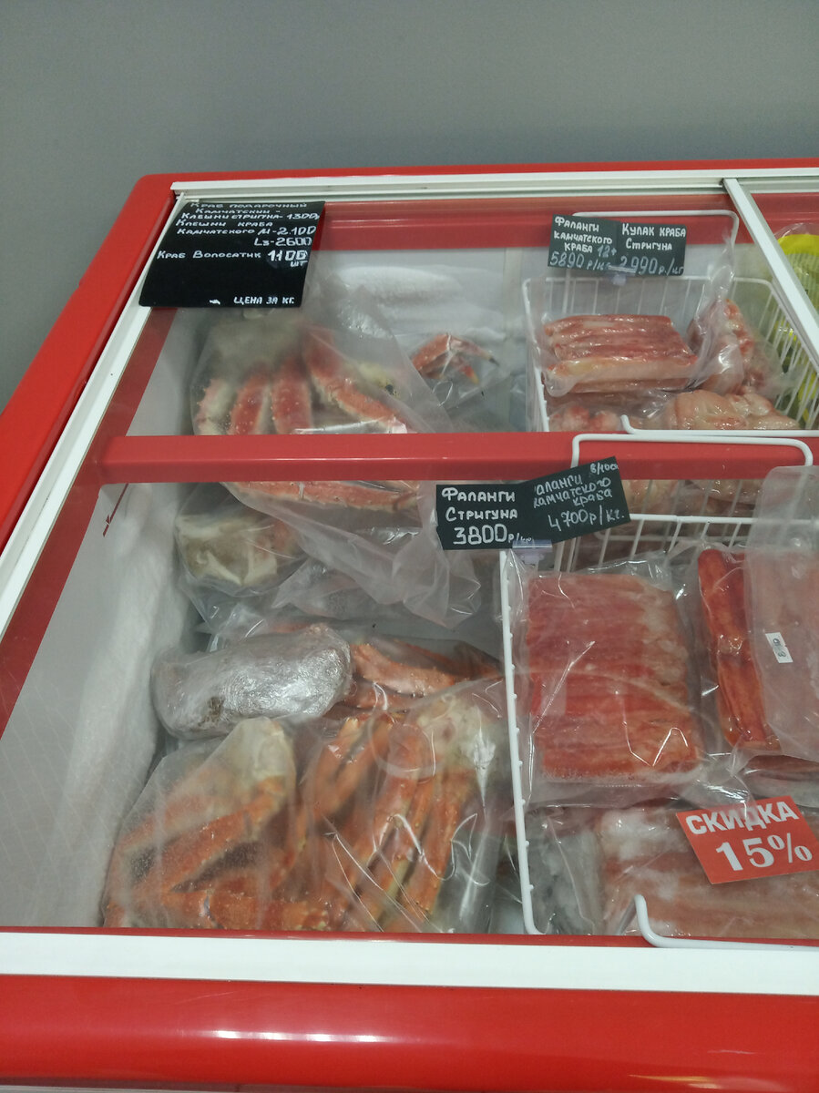 Сегодня на моем канале очередная статья из новой рубрики, первая публикация которой "Так вот какая ты, Россия! Эх, дороги! Взгляд из Донецка". Вновь напишу о том, как сейчас выглядит большая Родина для того, кто расстался с ней очень-очень давно. Теперь возвращаться к родным пенатам, точнее, открывать их заново, очень интересно после жизни в Донецке. Вот, например, среди множества огромных супермаркетов и торговых центров, которые нам пока и не снились, на улице неприметный магазин в старом здании. Мое внимание привлекла не вывеска, а открытая дверь, за которой открывался вид на полки, сплошь заставленные свежей выпечкой. Решив просто взглянуть на нее, вдруг замечаю еще один небольшой торговый зал, а там... Признаюсь честно, ничего подобного мне не приходилось видеть никогда. Что такое фишболл и фишролл, могу только догадываться. Но больше всего поразили фаланги и кулак краба. Но дело-то вовсе не в том, что в морозильных ларях в маленьком магазинчике притаились такие деликатесы. Д