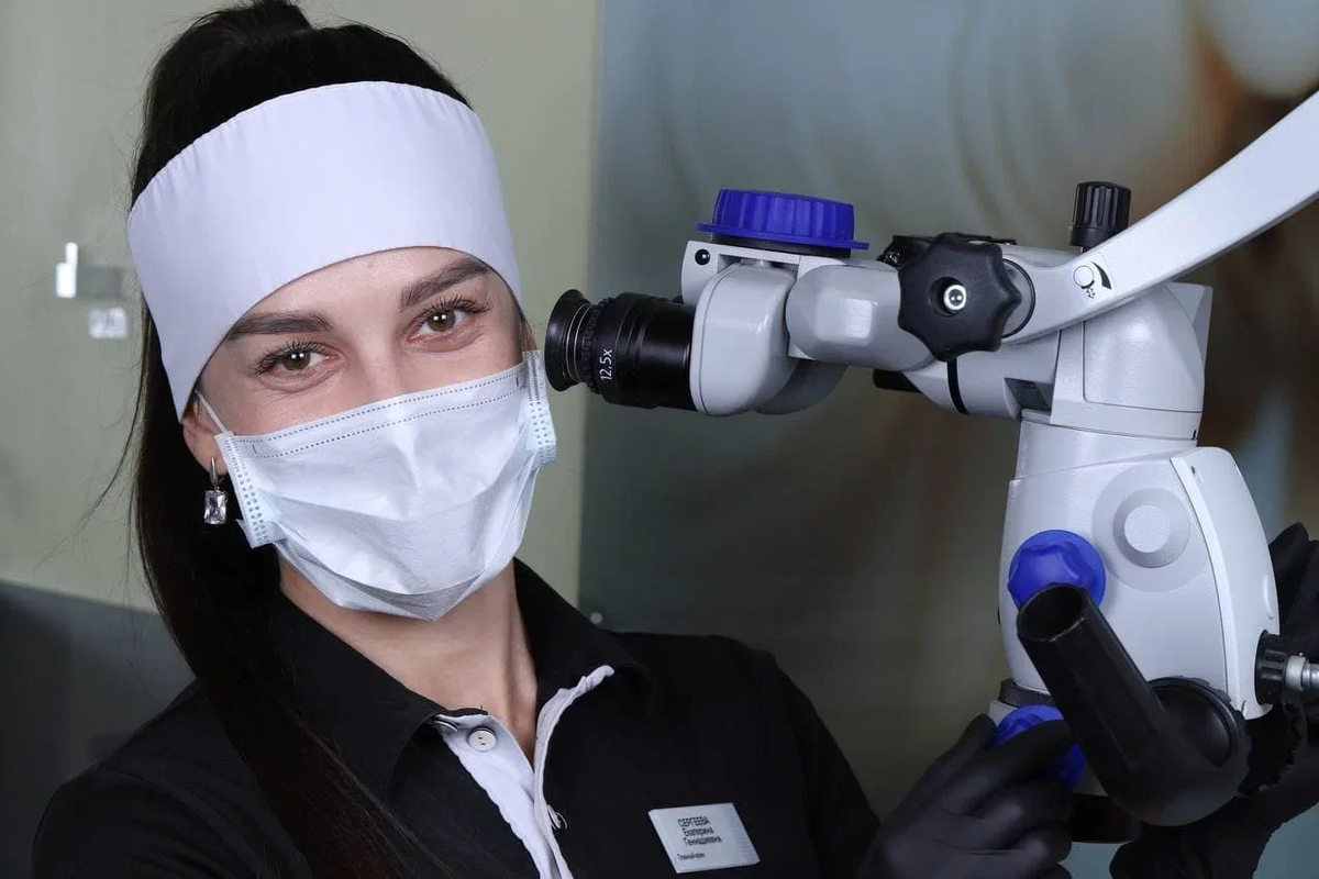 Врач с микроскопом обычно представляется как учёный, который сидит в лаборатории и работает с образцами. Но зачем рассматривать под микроскопом живые зубы, да ещё и прямо во время приёма? Существует простое правило: «Ты не можешь вылечить то, чего не видишь». Зубные каналы не просто маленькие, они крохотные – например, корневой канал обычно имеет диаметр около миллиметра! А врачу нужно аккуратно удалить оттуда все поражённые болезнью ткани, не затронув при этом здоровые части зуба. Естественно, вслепую это сделать очень сложно. Многие годы врачи были вынуждены смотреть на рентгенографические снимки, на которых видно структуру каналов, и действовать на ощупь. Сейчас ситуация изменилась: появились стоматологические микроскопы, которые позволяют доктору в реальном времени наблюдать зону проведения манипуляций под сильным увеличением. Использование микроскопа в стоматологии: В среднем использование микроскопа повышает общую эффективность лечения зубов примерно в полтора раза! Именно поэтом