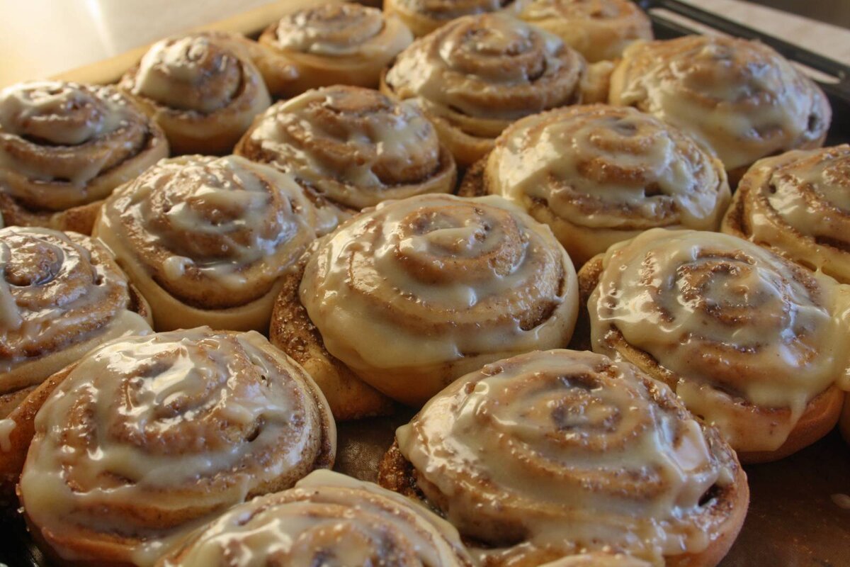 Предлагаю вам приготовить очень вкусный десерт! Мука – 4 ст. Молоко – 1,5 ст. Яйца – 2 шт. Сахарный песок – 3 ст. л. + 0,5 ст. на начинку. Соль – 1 ч. л. Дрожжи сухие – 10 г. Растительное масло – 4 ст. л. Корица – 0,5-1 ч. л. Для теста соедините муку, теплое молоко, яйца, 3 ст. л. сахара, соль, дрожжи. В последнюю очередь добавьте растительное масло и хорошенько вымесите. Дайте тесту постоять минут 10-15 и раскатайте его в пласт на столе. Посыпьте сахаром с корицей. Равномерно распределите рукой по поверхности теста. Скрутите рулет. Нарежьте рулет , залепляя каждую с одной стороны (чтобы не вываливалась начинка). Хвостиком вниз выложите на смазанную маслом сковороду. Выпекайте 20-25 минут в разогретой до 220 градусов духовке. Готовые булочки покройте заварным кремом. Для заварного крема: Молоко – 250 мл. Сахарный песок – 2-4 ст. л. Яйцо – 1 шт. Мука – 1,5 ст. л. Ванилин – 1 . Масло сливочное – 50 г. Яйцо взболтайте венчиком. Добавьте молоко и сахарный песок. Введите муку и ванилин.