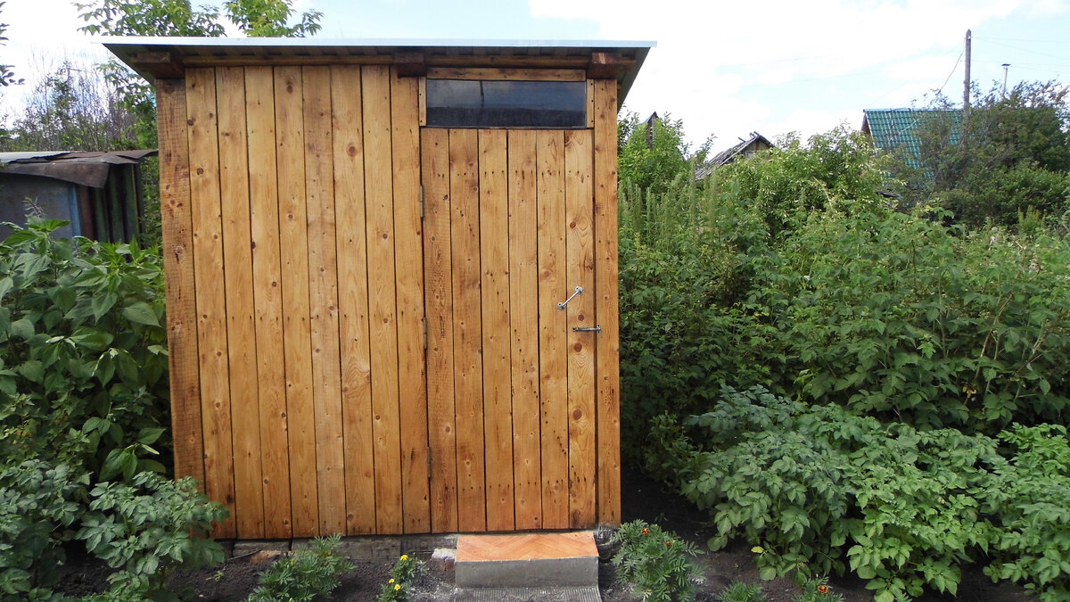 Уважаемые подписчики и гости моего канала! Сегодня я решила написать о том, как мы строили туалетное помещение на садовом участке. Почему помещение? Да потому что в нём имеется унитаз, раковина, умывальник и даже полотенце. Всё, что нужно для удобства. Наш сад находится километрах в десяти от города. С ранней весны до поздней осени мы каждый день ездим на садовый участок. Поэтому решили построить новый туалет. Участок мы покупали запущенный, но и можно представить, какой там был туалет. Сначала муж вырыл яму под 200-литровую бочку. В бочке сделал отверстия, чтобы жидкость уходила в землю. Бочку разместил в яме. Фундамент муж сделал из шпал б/у. Пол туалета застелил досками 40х20. Сделал постамент, на который потом установили крышку от унитаза. Каркас туалета сделали из бруса 10х10. Соединяли брусками 5х5 при помощи металлических уголков и саморезов. Зашивали каркас туалета досками 10х12. Предварительно муж всё дерево обжигал газовой горелкой для увеличения срока годности дерева. И о