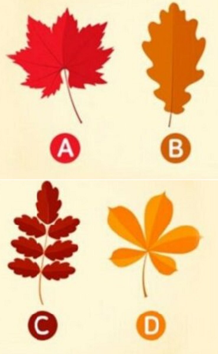 Этот тест раскроет все секреты вашего подсознания. Результат теста подскажет вам, чего вы на самом деле ожидаете от своего партнера и ваших отношений. Это очень простой тест. Вы должны отключить свой разум и довериться своим эмоциям и подсознанию. Просмотрите листики и выберите тот, который вам больше всего нравится, или тот, который первым бросился вам в глаза, или тот, который интуитивно привлекает вас. Давайте узнаем, что результат этого теста говорит о вас. Лист А Вы очень серьезный человек. Вы ко всему относитесь серьезно. Если вы влюбитесь в кого-то, вы сделаете все, чтобы завоевать его расположение. Вы строите очень прочные и длительные отношения. Вы хотите видеть в качестве своей второй половинки серьезного и неконфликтного человека. Лист В Больше всего в жизни вы любите свободу. Это ваша настоящая любовь. Именно поэтому вам трудно строить какие-либо отношения - вы не хотите потерять свою свободу. Вы не хотите брать на себя ни ответственности, ни обязательств. На данный момент