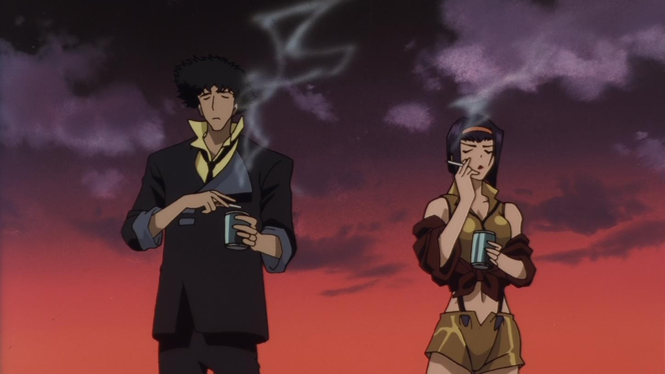 К каждой серии Ватанабэ подходит как к отдельной истории. Он не спешит развивать основной сюжет, уделяя время маленьким рассказам, раскрывающим персонажей. В «Бибопе» таким образом уживаются и гонконгский боевик, и спагетти-вестерн, и ситком, и даже хоррор — там есть серия, прямо отсылающая к «Чужому» (и при этом комедийная!). А еще он любит цитаты: в том же сериале можно найти отсылки к «Джонни Мнемонику», «Ворону», «2001: Космической одиссее». Полнометражный фильм «Ковбой Бибоп: Достучаться до небес» и вовсе смотрится как западное игровое кино. Отчасти это обусловлено тем, что действие его разворачивается в мегаполисе, очень похожем на Нью-Йорк. Тут есть и мост, который явно выглядит как Бруклинский, и кадры закатов над рекой, и приглушенная цветовая гамма — желтоватая, пыльная, передающая эстетику снятых на пленку фильмов 1990-х.