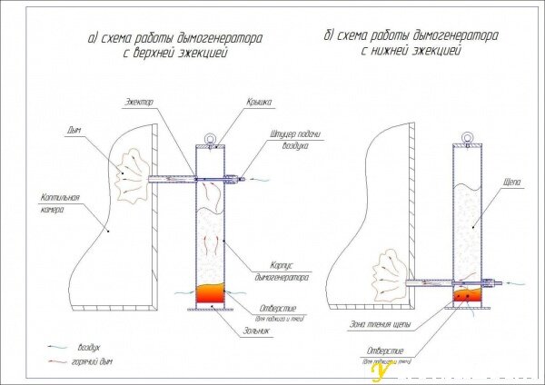 Для себя я выбрал дымогенератор с верхней эжекцией, рисунок "а". Этот вариант будет вырабатывать дым для коптилки более холодный, чем вариант на рисунке "б", что мне и нужно. Сегодня начинаю подготовку и подбор материала для изготовления ДГ. По ходу сборки буду выкладывать фото и описания к ним.