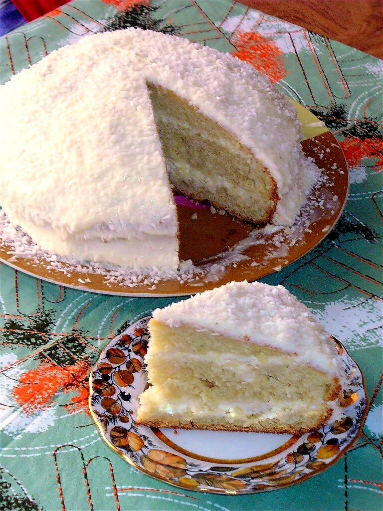 Самый простой и быстрый пирог, имеющий массу преимуществ - * доступные продукты, * несложность в приготовлении (справится даже начинающий кулинар), * масса вариаций - добавить какао, и вот он шоколадный, добавить растворимый кофе, вот и кофейный вариант, добавить цедру и сок лимона, вот и цитрусовый. * так же масса вариантов отделки, если таковая потребуется. Я обошлась без неё. Бисквит - 4 яйца, пакетик ванильного сахара, почти стакан сахара - всё тщательно взбить миксером, до побеления и увеличения в объеме. Не переставая взбивать, добавить примерно стакан муки. Тесто должно быть, как густая сметана. Форму смазать сливочным маслом, посыпать сухарями. Выпекать примерно 30 - 40 минут, ориентируясь на свою духовку. Готовый бисквит вынуть, охладить и разрезать на 2 или три коржа. Промазать кремом и посыпать кокосовой стружкой. Дать настояться минимум три часа. Крем - пачка сметаны (21% жирности), в пачке почти 500 гр, пакетик ванильного сахара, почти стакан сахара - взбить миксером