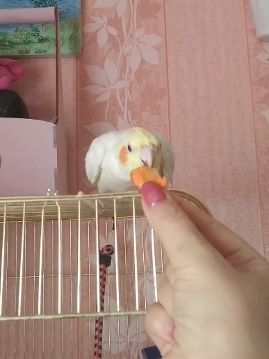 И я стараюсь придерживаться этого правила. Помимо зерна я обязательно даю фрукты (яблоки, груши…), овощи (помидоры, огурцы, свекла, капуста, морковь…). Веста очень любит сыр. Яйцо - одна из любимейших блюд Весты. Каша тоже входит в рацион Весты. И про цитрусовые я тоже не забываю. Мандаринки всегда лежат у Весты в кормушке или на клетке. Ни дня не обходится без травы и веточек. Ну и, конечно, куда же без вкусняшек? И обязательно разбавляю еду различными пищевыми добавками. И всё это и многое другое я обязательно даю Весте, чтобы она была здоровой попугайкой и как можно дольше радовала меня своим присутствием.
