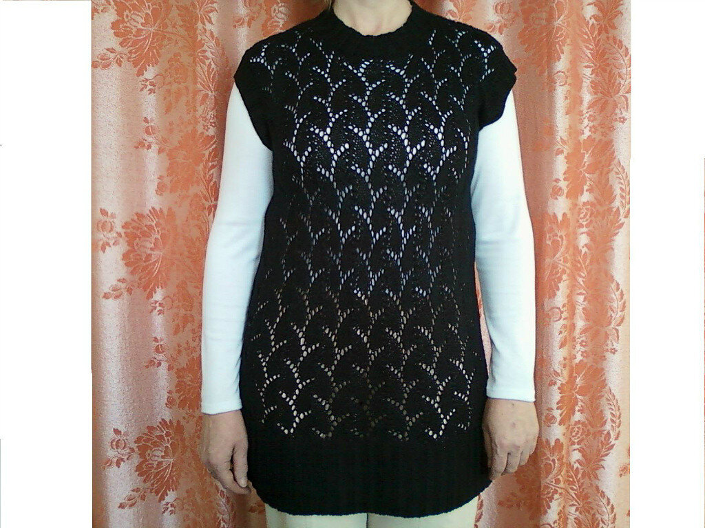 Для размер 44 понадобится 400 гр. вискозной пряжи 350 м.-100гр. Спинка. Набираем 116 петель и вяжем 10 см резинкой 1 лицевая 1 изнаночная. Затем переходим к вязанию основного узора. Через 44 см от начала вязания для проймы закрываем по 2 петли с каждой стороны Через 26 см закрываем все петли. Перед. Вяжется аналогично спинке, но на высоте 62 см для горловины закрываем средние 28 петель и запускаем отдельно закрыв для скругления горловины еще 2, 2, 1 петлю в каждом втором ряду. 📍Сборка. Спинку и перед сшиваем. По горловине и проймам набираем пели и провязываем 6 см резинкой 1х1. #вязание спицами #безрукавка спицами