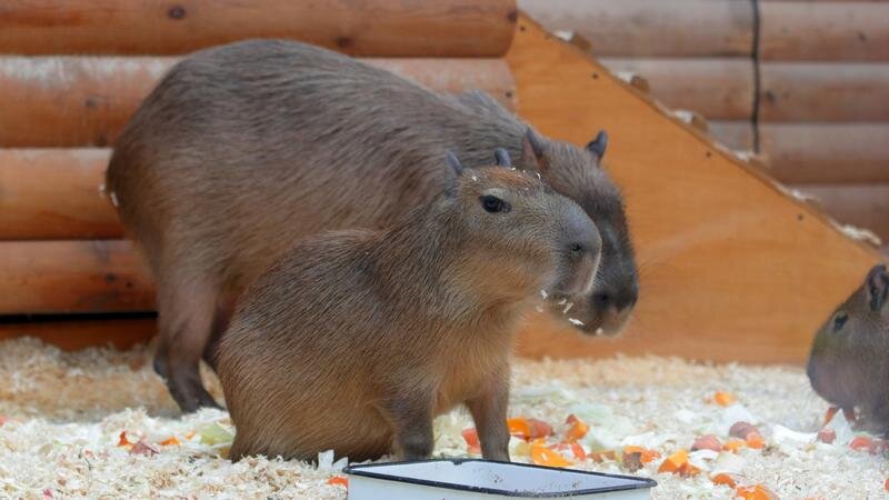 — Вы часто спрашиваете нас, как поживают капибары, и чем они заняты. Отвечаем: самые крупные в мире грызуны чувствуют себя прекрасно и ничем не заняты, — говорится в сообщении зоопарка «ВКонтакте».