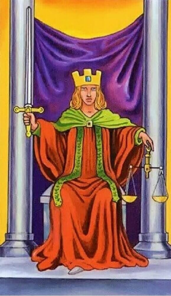 Ключевыми глифами (знаками) карты 11 Аркана Таро в контексте повествования являются весы и меч.