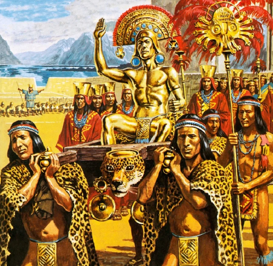 Сотрясавшие окрестные горы музыка и пение стихли. Вожди опустили подношения в воды озера, и следом с плота спрыгнул правитель. Когда он снова показался на поверхности, золотого кокона уже не было. Со склонов гор опять грянула музыка.