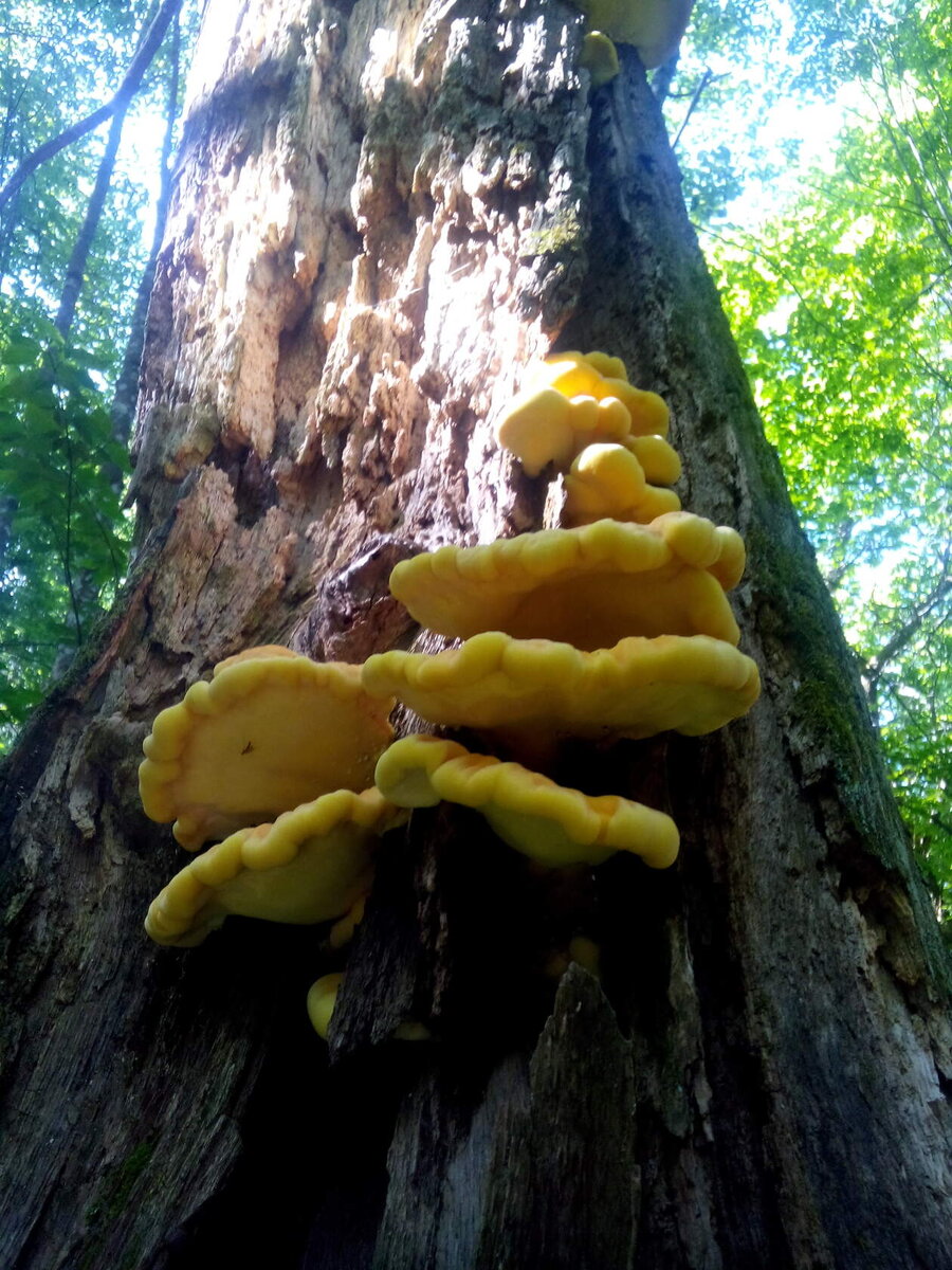 Новые грибные поступления в наш лес: трутовик серно-жёлтый, весенний опёнок и шапочка коническая