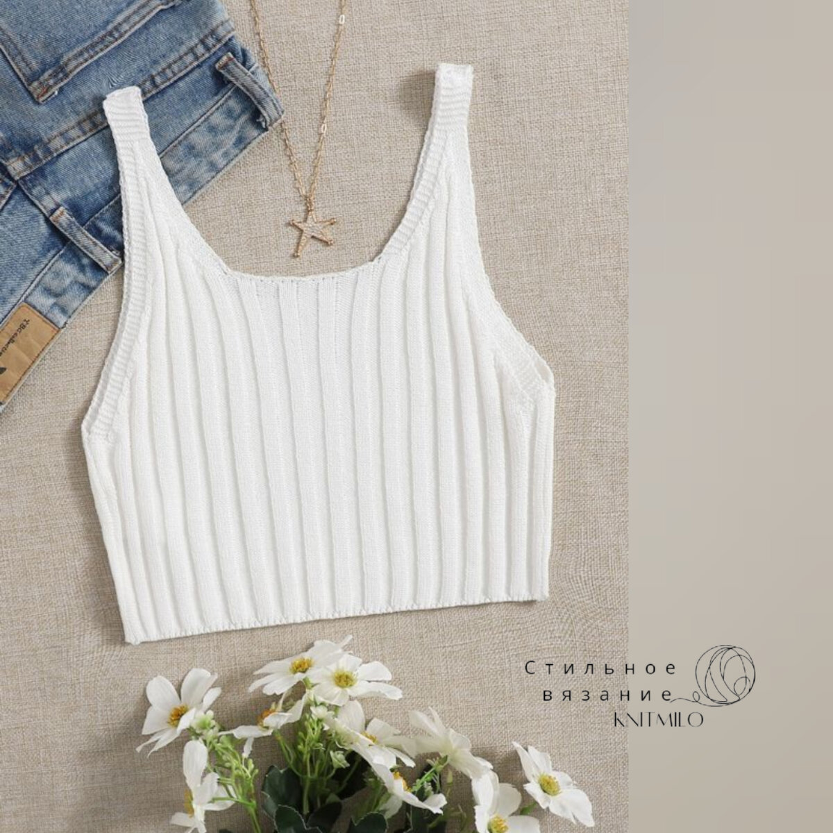 Начну с самых простых моделей. По низу топа нет резинок, основное полотно вяжется резинкой.