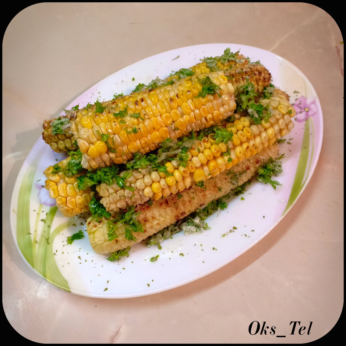 Жареная кукуруза с зеленью, маслом и чесноком.