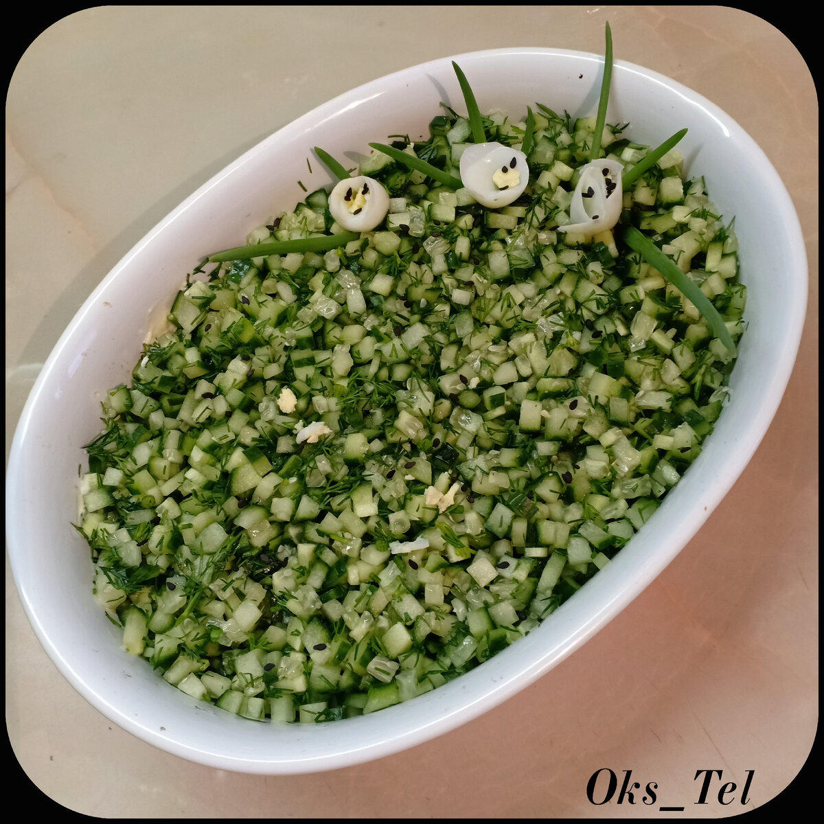 ПОНАДОБИТСЯ: - 1/2 отварной куриной грудки, - 2 головки репчатого лука, - 300г шампиньонов, - 1 длинный свежий огурец, - 2 яйца, сваренных вкрутую, - 200г чернослива, - майонез, - пучок укропа, - соль, перец - по вкусу. ПРИГОТОВЛЕНИЕ: 1. Куриную грудку нарезать кубиками. Лук очистить и мелко покрошить. Грибы очистить, ополоснуть и нарезать дольками. 2. Обжарить немного лук, затем добавить грибы и пережарить их вместе до готовности, выложить в глубокую миску, остудить. Посолить и поперчить по вкусу, добавить нарезанное куриное мясо, добавить майонез, все перемешать. Выложить эту смесь в салатник или глубокую миску, разровнять. 3. Чернослив нарезать кубиками или тонкой соломкой, выложить на слой с курицей, грибами и луком, разровнять. 4. Яйца натереть на крупной терке, выложить на слой чернослива, разровнять, сверху смазать майонезом. 5. Свежие огурцы нарезать соломкой или кубиками, отжать лишнюю влагу. Укроп мелко покрошить. Смешать огурцы и укроп, слегка присолить. Выложить огуречно-у