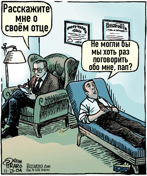 Первая часть состояла в основном из работ популярного американского автора Дэна Пираро. В этот раз набор авторов более разнообразный, но и без комиксов Дэна не обошлось. Кстати, в прошлый раз в комментариях разгорелась жаркая дискуссия по поводу различий между психологом, психиатром и психотерапевтом. Благодаря некоторым довольно исчерпывающим объяснениям, мне поначалу показалось, что я наконец разобрался. Правда потом в замес попало ещё одно понятие - психоаналитик, и я окончательно запнулся. Но, я думаю, вы зашли сюда не за этим, а чтобы наоборот отвлечься от всякой неразберихи в голове и просто посмеяться. И вообще, как здорово, что все вы здесь! Зарисовка от художника под псевдонимом Ник Арагуа для вас! В одном из объяснений говорилось, что кто-то из этих психо-специалистов - врач, а кто-то - не врач. В комиксе от Чилика фигурирует всё-таки персонаж с медицинским образованием. А вот в комиксе от Андрея Нарова (он же Преколер) в роли психолога выступает просто человек, готовый высл