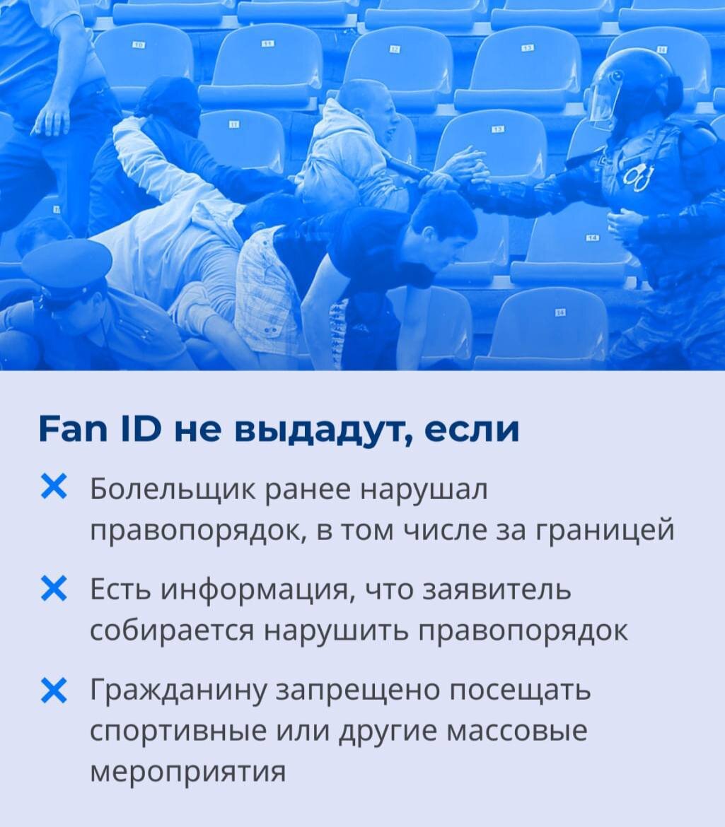 И снова все привет. Увидел вот такую картинку, которая на обложке статьи. Пишу практичсески сразу после того, как узнал свод правил. Поговорим немного о самом фан айди, что это, куда это и зачем. Деваться некуда, хочу не хочу - это никого не интересует, нам теперь с этим жить. Давайте по порядку. Начнем с пунктов на обложке. 1) «Болельщик ранее нарушал правопорядок, в том числе за границей». Здесь уже начинаются некоторые вопросы. Смотрите. Если человек совершает какое-либо преступление, я так понимаю неважно, административное или уголовное, даже если это единичный случай, человек оплатил штраф и тд, то он все равно больше никогда в жизни не сможет получить фан айди? По их логике, получается так. Или же существуют какие-то сроки, после которых паспорт фаната может быть выдан. Как всегда ничего не разъяснили. 2) «Есть информация, что заявитель собирается нарушить правопорядок». Ну это, наверное, самое странное условие. Я до конца не могу понять смысл этого устава. То есть, как можно пон