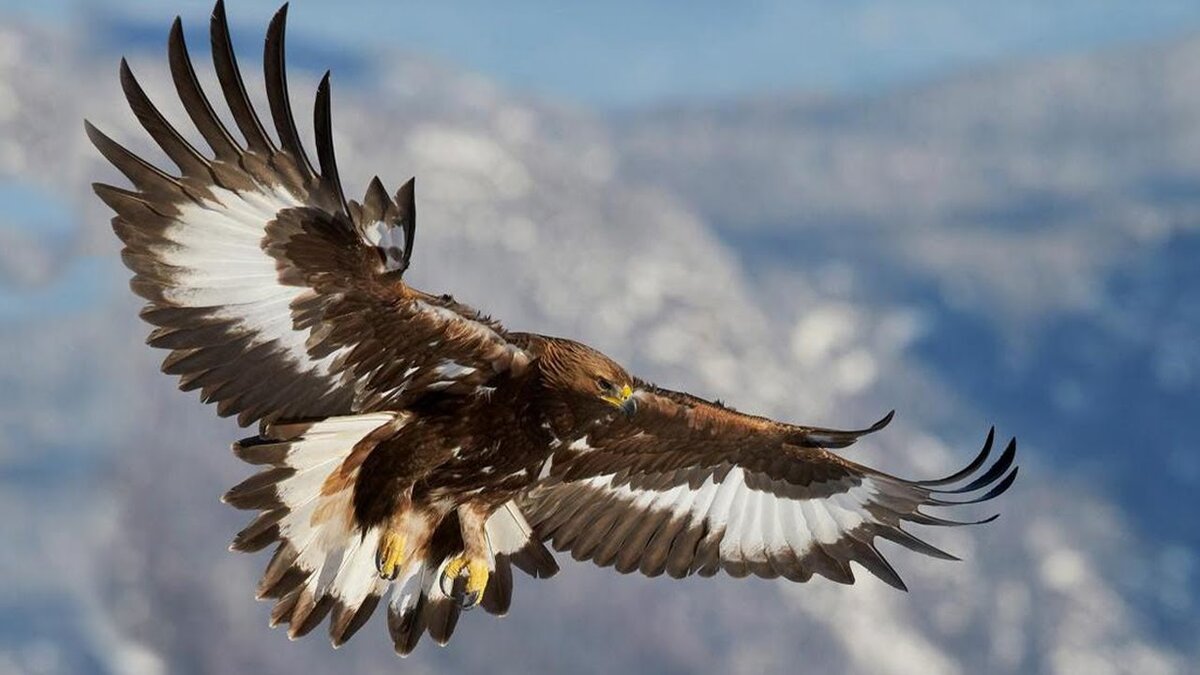 Впечатляющие размеры феноменальное цветное зрение необычайная сила и выносливость а также смертельно опасное оружие в виде мощного клюва и гигантских острых когтей что совместно с огромной скоростью делает его крайне эффективным и опасным охотником привет друзья вы на канале время с пользой и герой сегодняшнего выпуска обитатель труднодоступных горных регионов величественный и очень грозный хищник самый крупный орел и настоящий хозяин небо беркут переходим к делу беркут один из самых известных пернатых хищников это крупнейшие представители рода орлов что подтверждается длиной тела от 76 до девяноста трех сантиметров и размахом огромных крыльев до двухсот сорока сантиметров средний вес самцов около трех с половиной килограмм самки на порядок крупнее и могут весить более 6 килограмм темно-бурый окрас дополняется золотистыми перьями на шее и затылке поэтому английское название птицы и звучит как золотой орёл беркут обитает на территориях северной америке европы азии и северной африки в з