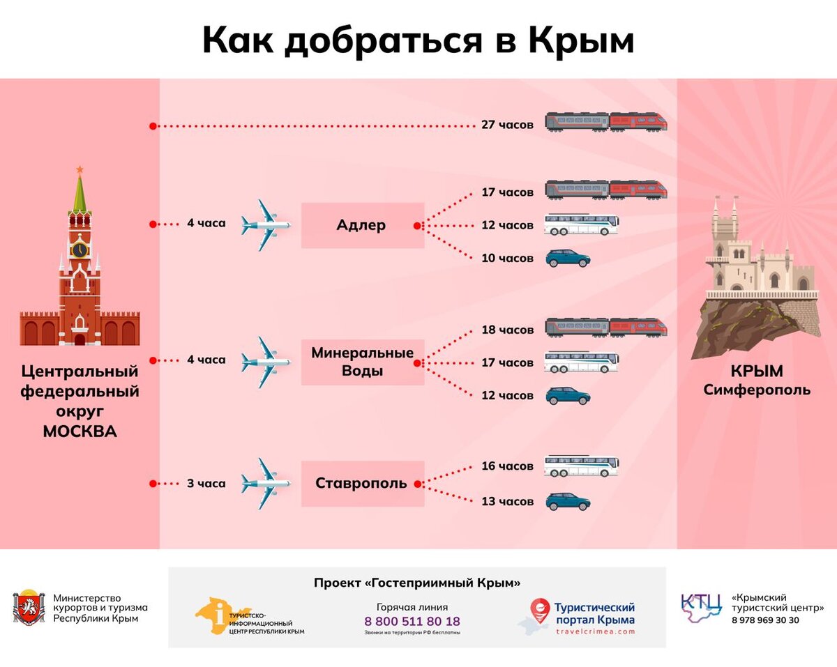 🌴 С 1 июня в Крыму летает «Комета 120М». Быстроходное морское пассажирское судно позволяет прокатиться в сезон между Севастополем и Ялтой. Время в пути примерно 2 часа. Билеты лучше брать комфорт за 1000₽, эти места в носовой части с панорамным остеклением. Обычный билет стоит 700₽. Рейсов пока не много: из Севастополя отправление в 8:00, а из Ялты отправление в 17:00. Купить билеты можно на оф.сайте 🌴 С 10 июня возобновятся поездки в Крым по Единому билету, через Анапу. Для этого синхронизировали расписание поездов дальнего следования и автобусов. Автобусы будут ходить между ЖД вокзалами Анапы и Симферополя. Каждый день по три рейса туда и обратно. Уже можно оформить Единый билет «поезд + автобус» в кассах любого ЖД вокзала, или на сайте ОАО «РЖД». 🌴 Министерство туризма Крыма подготовило удобные инфо карточки «Как приехать в Крым». 🌴 До 12 июня продлили закрытие аэропортов на юге! 🌴 С 6 июня в Крыму отменяют обязательное ношение масок! Теперь обязательное требование зам