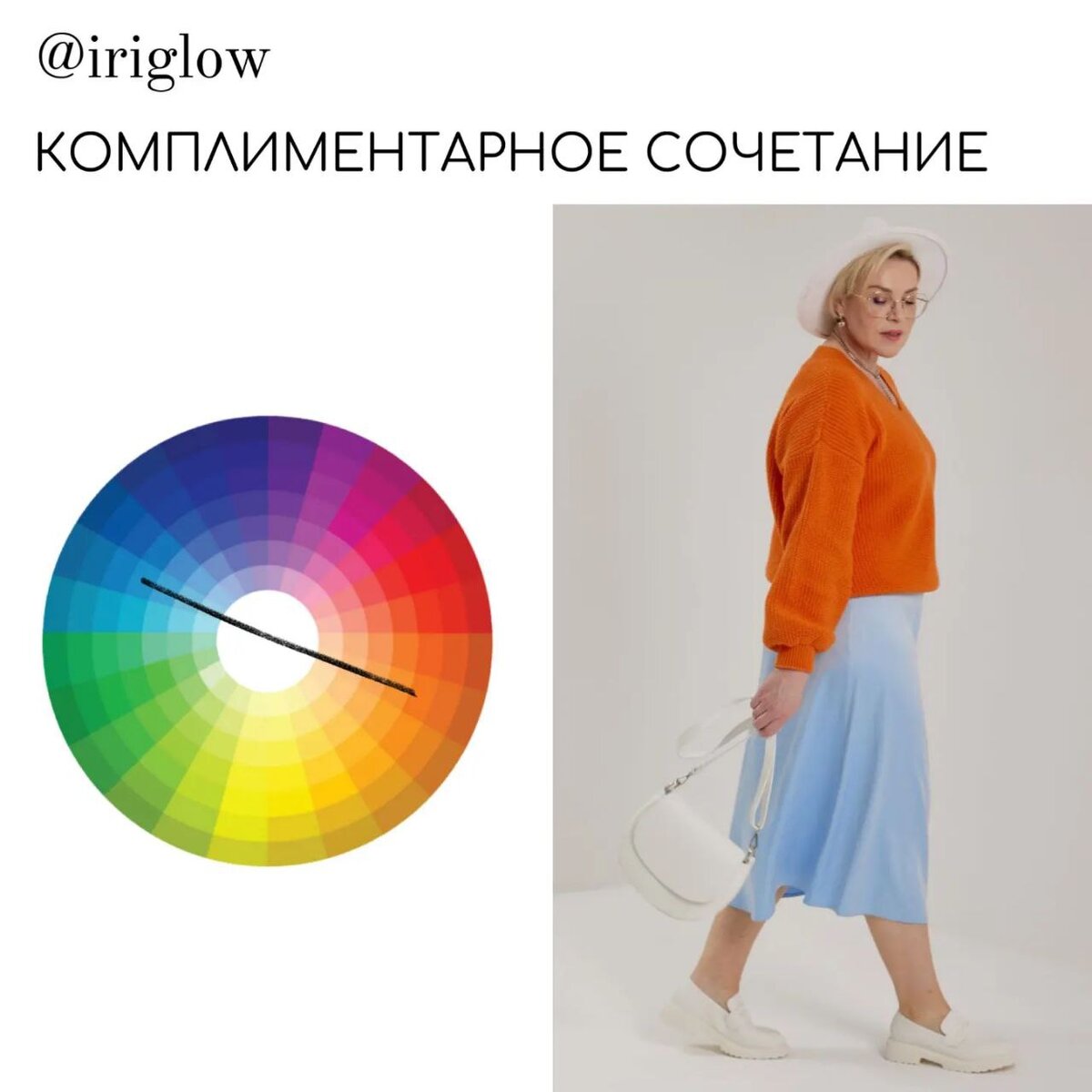 Здравствуйте, дорогие читатели! Знаю, что многим из вас нравится тема цвета, которую я просто не могу обходить на своем канале, ведь как-никак претендую на звание ЯРКОГО стилиста! Я уже знакомила вас с основными цветовыми схемами, которые помогут вам грамотно сочетать яркие цвета, также мы обсуждали некоторые конкретные цвета, такие как синий, зеленый, красный и желтый. Сегодня же хочу подробнее остановиться на одной из схем, которая позволит вам с легкостью внедрять в свой образ сразу несколько ярких цветов. Подписывайтесь на меня в телеграм iriglowstyle, там вы тоже сможете найти много интересной информации. Не забывайте ставить лайк за мои старания! Для начала как всегда советую вам к прочтению предыдущие статьи по теме: Согласно комплиментарной схеме, хорошо сочетаются между собой оттенки голубого и оранжевого. Если вы не хотите использовать сразу два насыщенных цвета в своем образе, выбирайте точечный акцент. Возьмите яркое платье и несколько деталей: к примеру, босоножки и очки.