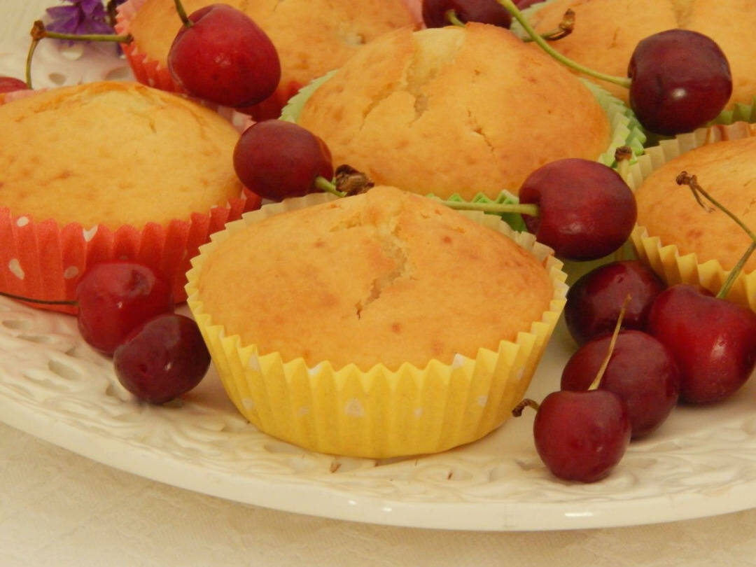 На календаре июнь.., а это значит, что пришел сезон черешни! Будем есть, делать смузи, лимонады, мороженое, пироги и кексы. Сегодня предлагаю рецепт маффинов. Тесто готовится очень быстро и легко. Это базовый рецепт, ведь маффины можно испечь с любимыми ягодами и фруктами, шоколадом и вареньем. Итак, приступаем! Ингредиенты: пшеничной муки, сахара, разрыхлителя, соли, соды, сметаны (можно заменить на натуральный йогурт), куриных яйца, растительного масла Способ приготовления: Смешать сухие и влажные ингредиенты, тесто разложить по формам наполовину, положить начинку и сверху накрыть ещё тестом. Выпекать при температуре 180 градусов в течение 25 минут.