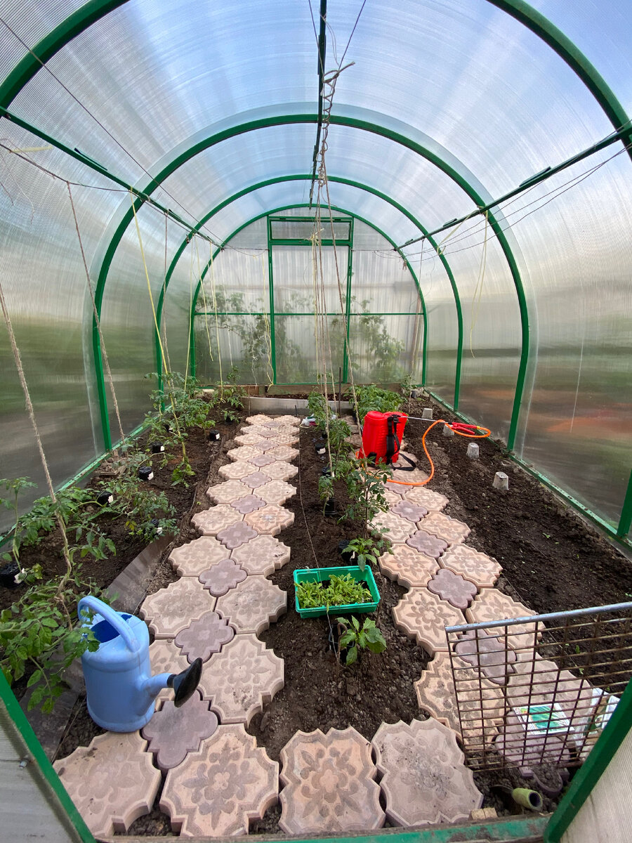 В прошлом году переставляли теплицу и грядки в ней сразу не сделали , а время поджимало, помидоры 🍅 жутко переросли и поэтому вычалила как есть Но очень быстро я об этом пожалела . При поливе земля стала «сползать» на плитку . В этом году я с марта месяца просила мужа сделать грядки , но все руки не доходили . и я решила заказать на сайте и нашла прям готовые грядки именно в теплицу пол нужный размер . Заказала, через два дня привезли. Стала собирать ,инструкция прилагается и думаю каждый справится со сборкой Самое сложно было вынести всю плитку из теплицы. Застелила дорожки материалом в два слоя Подсыпала грунта в грядки и высадила помидорки , перцы и огурцы 🥒 Теперь любуюсь и жду урожая Ах, да . Надо плитку обратно уложить ) #огород #теплица #грядки в теплице #помидоры в теплице #как сделать грядки