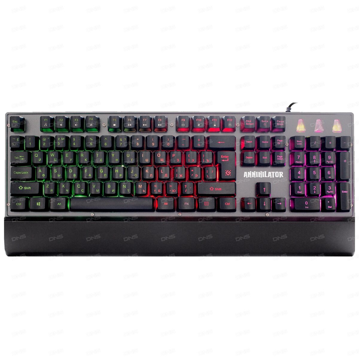 И снова здравствуйте. Сегодня у нас на обзоре игровая клавиатура Defender Annihilator GK-013. Проводная клавиатура Annihilator GK-013 от компании Defender — продвинутый девайс для любителей игровых марафонов. Клавиатура выполнена в прочном корпусе с классическим дизайном и предусматривает наличие набора игровых функций, которые упрощают игровой процесс и позволяют быстрее выполнять привычные действия. Модель оборудована 104 клавишами. Кнопки изготовлены из матового пластика. Сверху они имеют углубление под палец. Что касается символов, то они видны очень хорошо. Русская и английская раскладки смещены друг относительно друга. Клавиши имеют мембранную конструкцию, их ход отличается плавностью, четкостью и минимальным уровнем шума. Угол наклона клавиатуры удобно регулируется с помощью ножек, влагоустойчивая конструкция идеальна для гейминга. Надежная клавиатура имеет подключение к компьютеру с помощью USB, плетеным кабелем длиной 1.5 м. Особенности Клавиши этой модели выполнены в классич