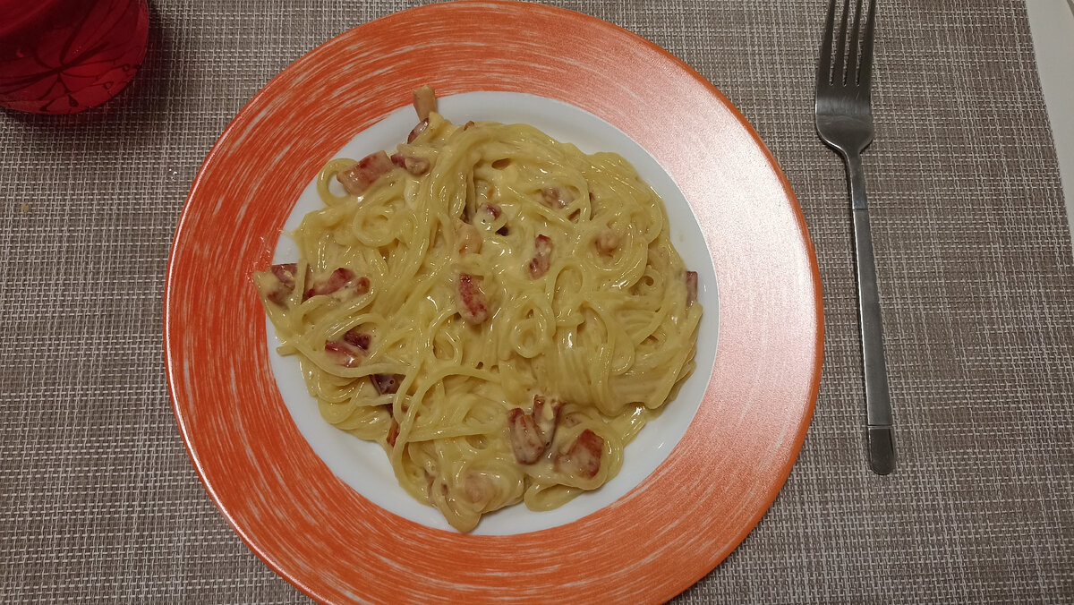 Добрый день, дорогие читатели! Продолжаю делиться с Вами быстрыми рецептами из своей копилки. Сегодня это паста Карбонара. Не претендую на оригинальную версию рецепта. Эта блюдо я готовлю именно таким образом, быстро, без лишних затрат, а самое главное вкусно. Ингредиенты на 2 порции: Приготовление По сути блюдо готовится пока варятся спагетти. Грудинку нарезать на маленькие кубики и обжарить на сковороде без добавления масла. Добавить измельченный чеснок. В салатнице смешать вилкой яйца и натертый сыр. Готовые спагетти отправляем в сковороду, добавляем сыр с яйцами и перемешиваем. В идеале яйца должны приготовиться за счет горячих спагетти и грудинки, но я для успокоения включаю под сковородой минимальный огонь и, помешивая, жду пока сыр полностью расплавится, и соус станет однородным. Это занимает одну-две минуты. Блюдо готово, можно подавать к столу. Приятного аппетита! Другие быстрые рецепты здесь: А какие быстрые рецепты есть в Вашей копилке? #быстрые рецепты #паста карбонара