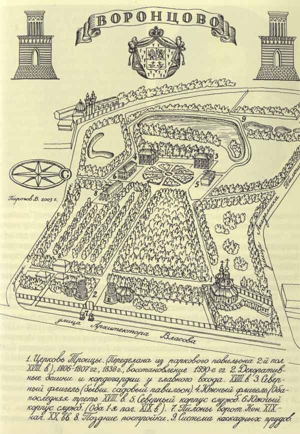 Ранее на Канале я уже размещал материал из серии "было-стало". Дело это оказалось довольно интересное. Поэтому давайте продолжим тему. И сегодня я предлагаю сравнить усадьбу "Воронцово" - как было ранее, и как стало в наши дни. Тем более что там недавно завершилась реставрация. Для начала приведу план парка, с указанием основных сооружений. Схема, правда, 2003 года, то есть немного устаревшая, но для наглядности пойдет. Постройки будем рассматривать по оси север-юг. Теперь пройдемся более подробно по архитектурным памятникам усадьбы. Парадный въезд. 1997 г. 2022 г. Этот комплекс был отреставрирован одним из первых, в начале 2000-х. Северная часть усадьбы. Северный флигель (гостевой). 1996 г. 2022 г. Северный служебный корпус (оранжерея). 1995 г. 2022 г. Эта часть усадьбы была отреставрирована в 2006-2008 гг. Южная часть. Южный флигель (кухонный). 2000-е гг. 2022 г. Отреставрирован в 2021-2022 гг. Южный служебный корпус (людская конного двора). 2000-е гг. 2022 г. Здание было отреставри