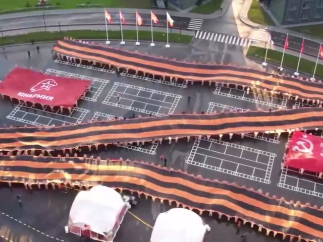 В Подмосковье недавно была проведена патриотическая акция, посвященная дню юридической регистрации (двадцать девятого июля 2016 года) и образованию военно-патриотического детско-юношеского общественного движения, которому исполнилось шесть лет. У здания учебного центра "Авангард" на плацу была развернута самая большая в мире георгиевская лента.